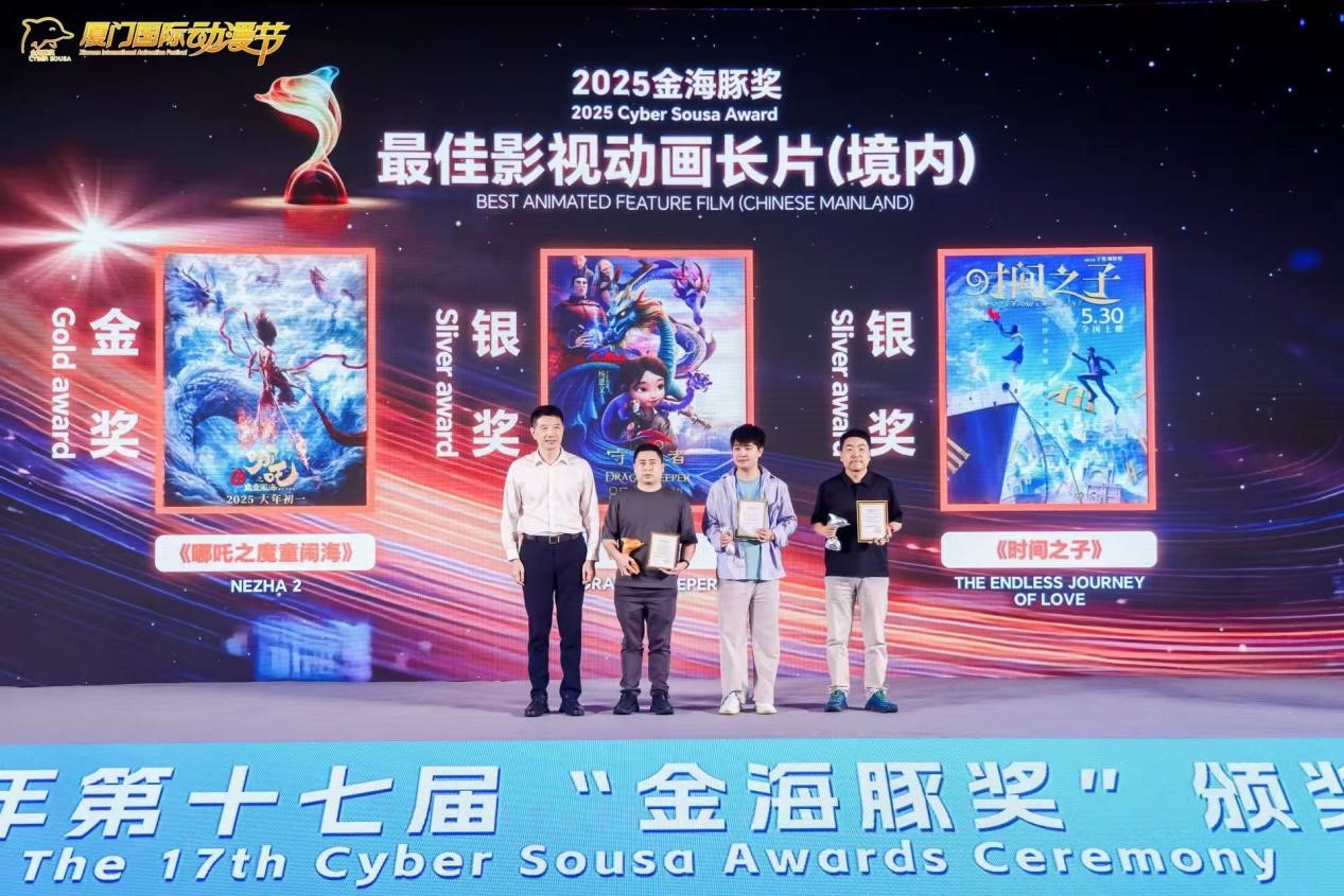 电影《哪吒之魔童闹海》斩获第十七届金海豚奖 可可豆动画资产总监 郎思波(左2)领奖 2025 年 10 月 3……